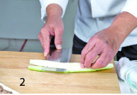 2.絲瓜去皮後切塊;雜菌菇切去少許尾段,撕散備用。(圖2)