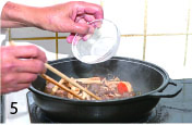 5.調味汁液拌勻,邊倒入邊快手炒勻。(圖5)