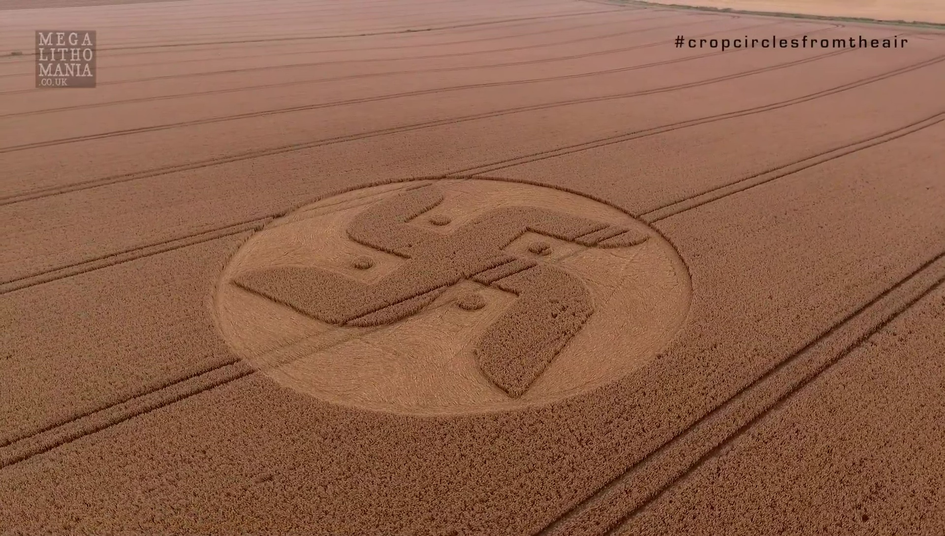 該卐字符麥田圈位於英國西南部威爾特郡的一塊鄉村農田。它在一個直徑為45米~55米的圓中。卐字符四個邊之間的空隙各有一個圓。整個卐字符的圖案非常整齊、優美。