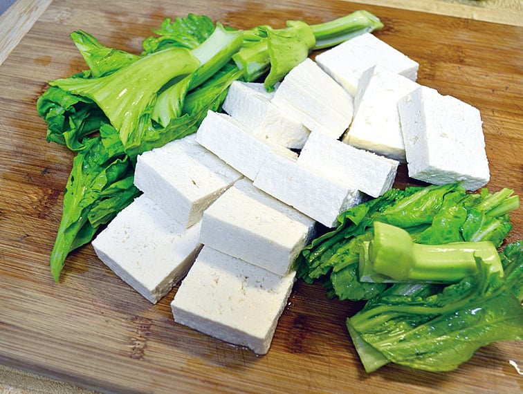 2.大芥菜洗淨切段,硬豆腐切大塊。