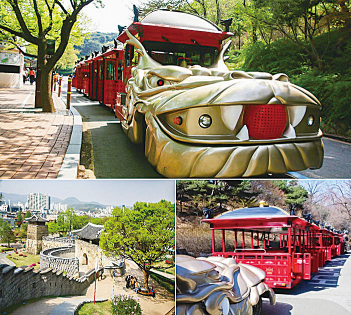 如果前往水原華城遊覽,推薦您務必要體驗乘坐華城列車。雖然沿著城郭一邊漫步一邊欣賞水原華城也不錯,但是在華城列車上眺望華城卻別有一番樂趣。華城列車是往返於八達山與練武台之間的觀光列車。列車前部的龍頭模樣象徵著正祖大王(朝鮮第22代王,在位時間1776~1800)的英姿,乘客所坐的車廂則模仿了王乘坐的轎子。全程共3.2km,從八達山至練武台約需30分鐘。