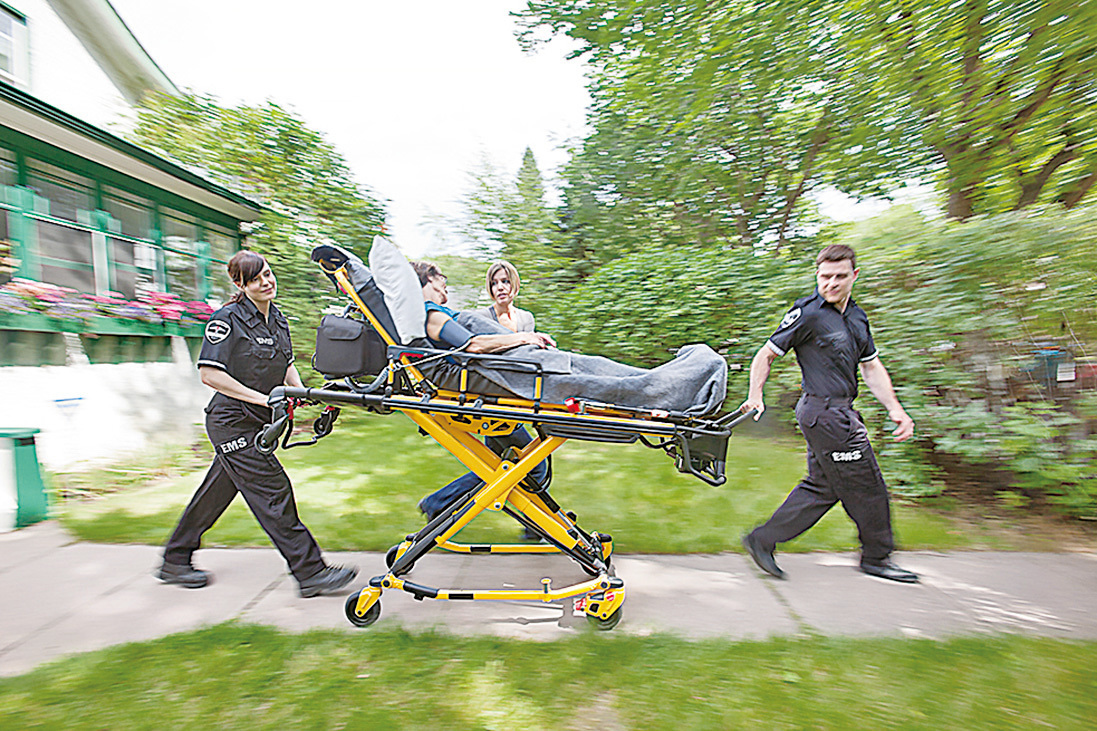 她說昨天晚上從床上起來的時候昏倒過三次,頭碰到地上。我看她頭上還流著血。她要求我幫她看看,通常我們是不能幫病人診斷的,所以我們便打電話叫醫生來幫她看。那女醫生來了,也只是問問題,沒有替她安上EKG 觀察器。於是我們按照指示把她送到醫院。梅特和我用特別的樓梯椅子把她從樓上搬下來。這一次可相當順利,那還得歸功於這老太婆又乾又扁,不用花費我們太多的力氣。