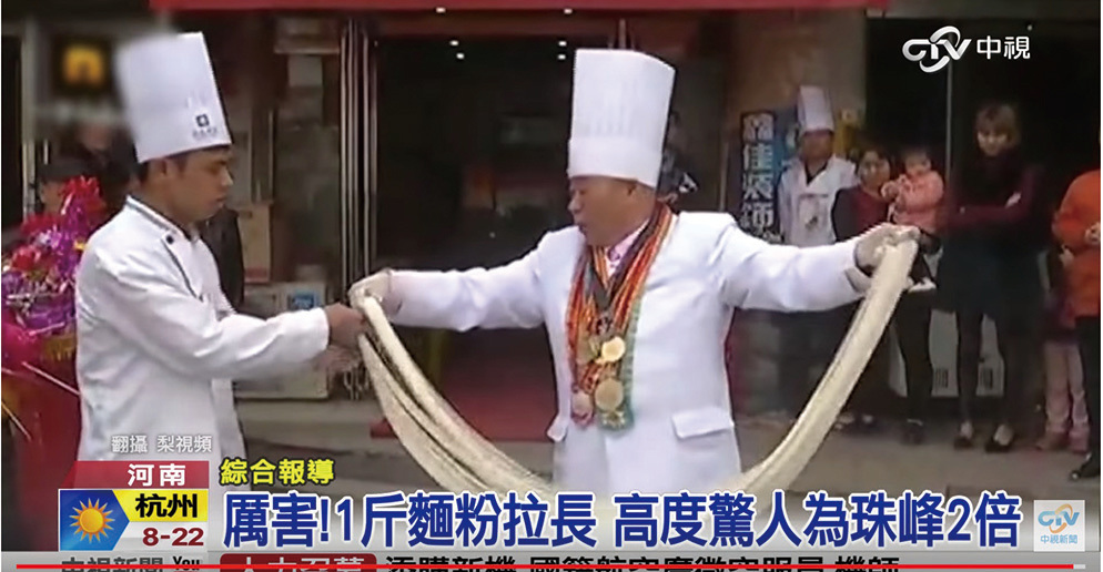 在30年的拉麵經歷中,厲恩海拉出了全世界最長的龍鬚麵——相當於珠峰高度的133倍;全世界最細的麵條——在一個針孔中同時穿進39根麵條;全世界規格最高的麵點——招待多個國家元首。◇