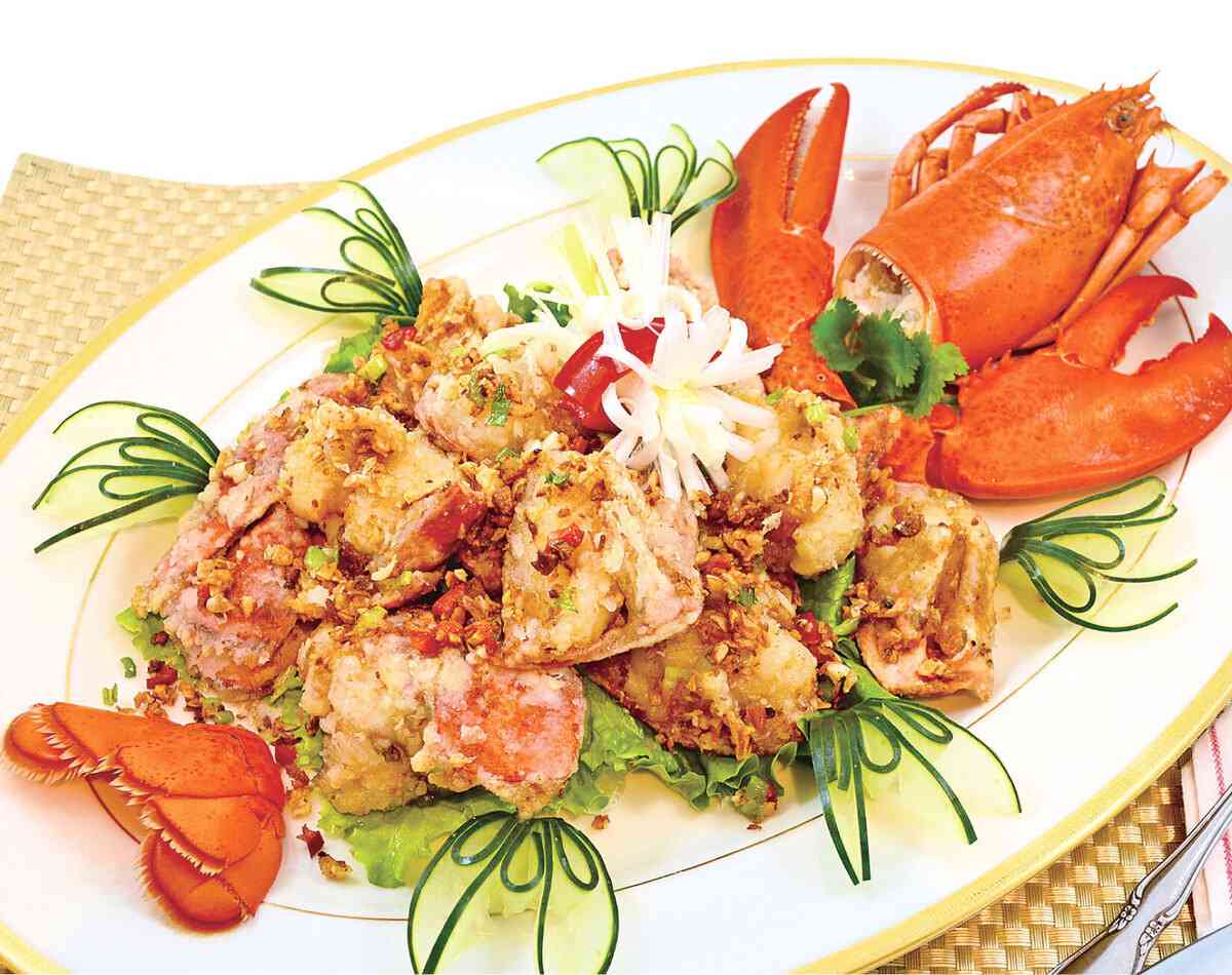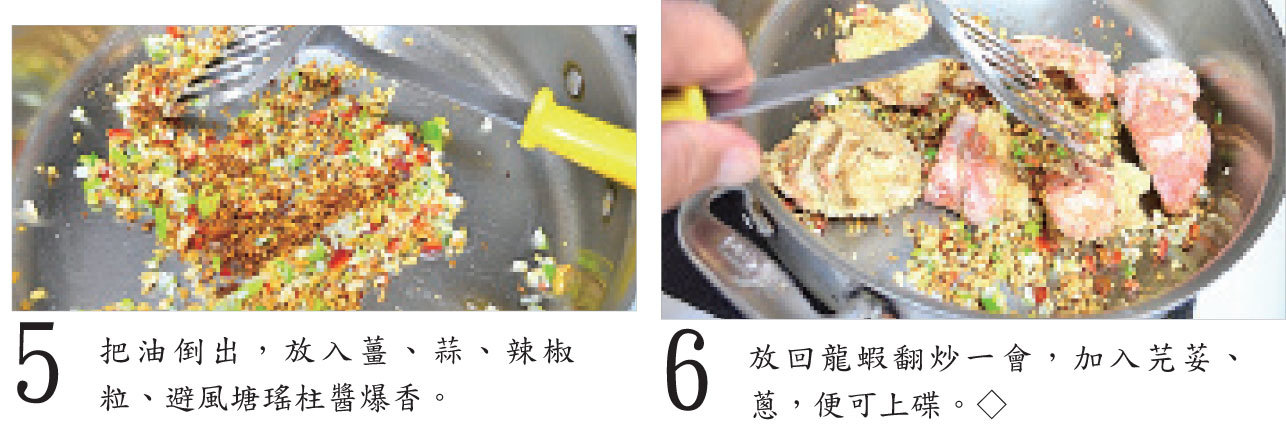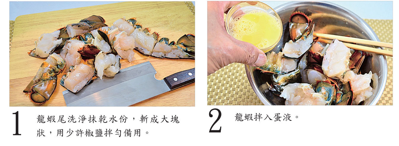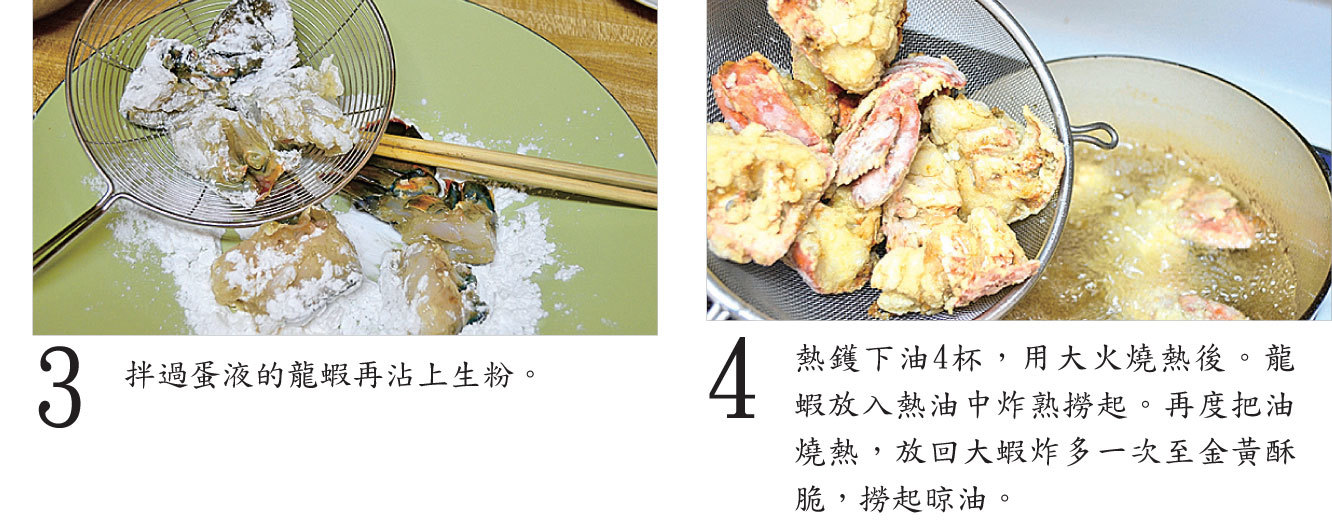 龍蝦拌入蛋液後,用荷蘭風車牌生粉上粉炸比較脆口。要炸兩次才有這效果。