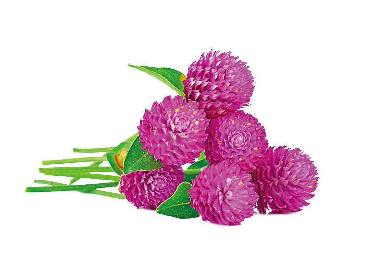 圓仔花叫「千日紅」,花朵像一顆顆紫紅色湯圓,這草花花期長且一開就肆無忌憚地一大片。