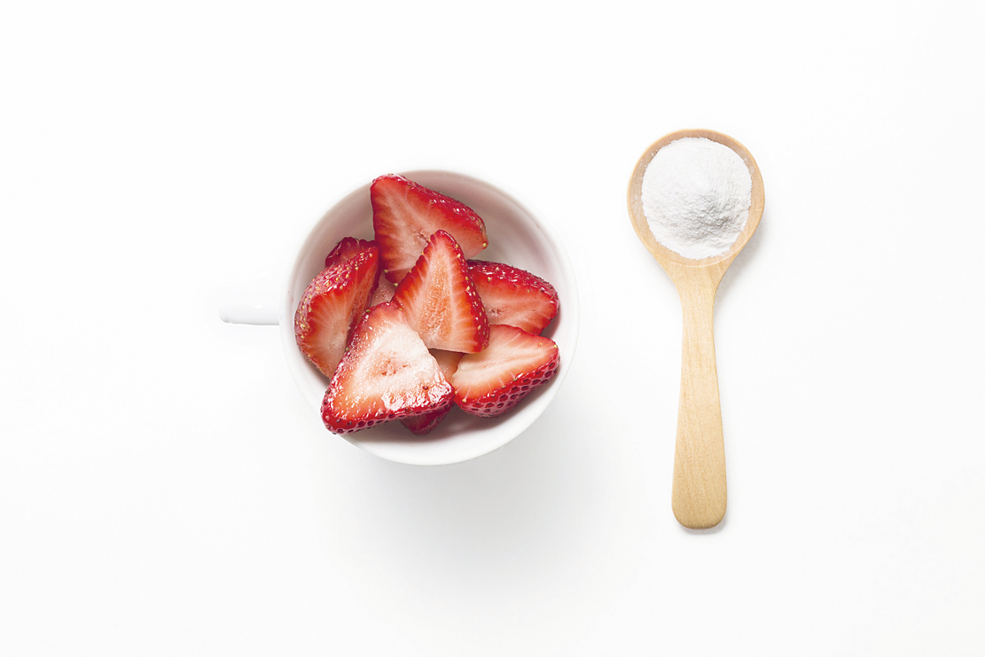說明:用叉子把士多啤梨搗碎,使用過濾器提取汁液,添加薰衣草精油混合在果汁中。用化妝棉沾取果汁塗抹於面部及頸部,避開眼周肌膚。然後用搾汁的士多啤梨果肉(差不多成漿了吧)按摩皮膚幾分鐘,再用冷水沖洗。
