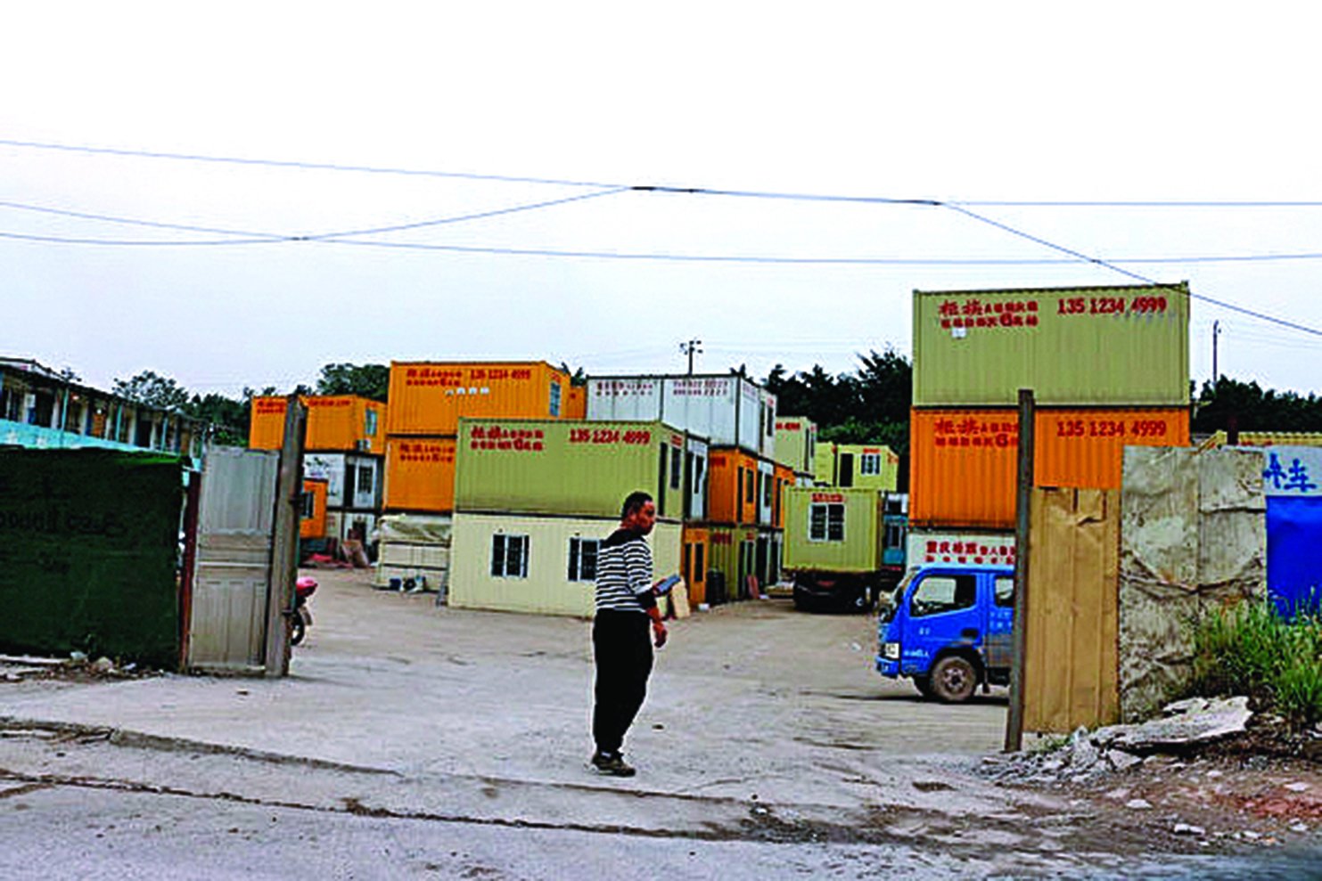 按照「櫃子」外牆噴塗的電話號碼,記者聯繫到租賃「櫃子」的商家,其負責人齊建芳表示,這樣的櫃子只要你有地方擺,隨時可以租,工地工頭租的較多。租賃需交 8,000 塊錢押金,每個櫃子日租金為 6 元,運費自理,如果客戶要買,櫃子的單價是12,000 塊錢。