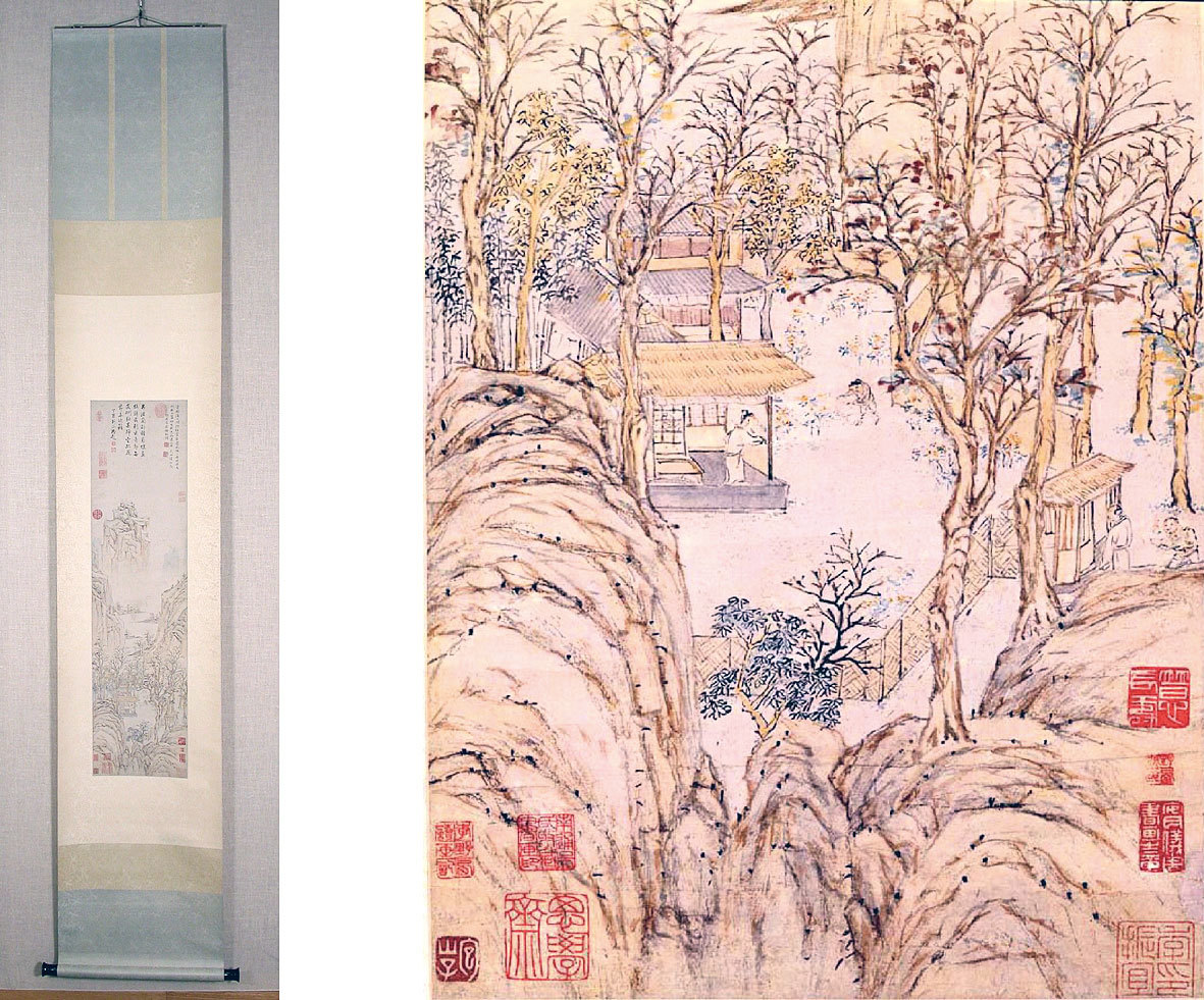山水畫作品有立軸、手卷、冊頁、扇面等基本形制。立軸(掛軸)用絛繩懸掛,手卷一般是捲起收藏於篋中,必要時才會攤開鑑賞。