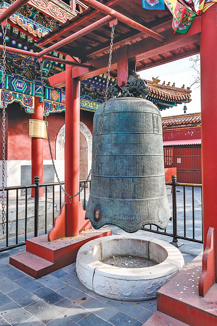 鐘樓大鐘鐘體通高5.55米,鐘唇外徑3.4米,重約63噸,全部由響銅鑄成,撞擊時聲音純厚綿長,京城內外方圓數十里均可聽見。鐘聲盪及之處,澤被萬物,帶給人心靈上的淨化、精神上的鼓舞、思想上的啟發,對社會人心產生一股道德的自我約束力。