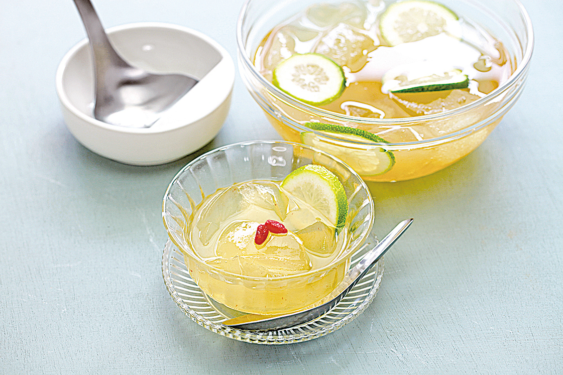 不過要注意的是,如果換成加了糖的檸檬愛玉凍,每100克的熱量就爬升到52大卡。對熱量斤斤計較的人,也可搭配水果一同食用,藉由水果天然的香甜來取代糖,或添加天然的蜂蜜則風味更佳。