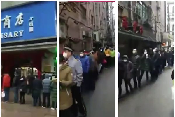 1月27日,上海市民在市中心排長隊購買口罩的視頻、圖片在社交媒體上不斷刷屏。隨著武漢省長宣稱500萬武漢人已逃離當地,上海市民恐懼怕上海成武漢第二,各大型超市出現搶購潮,貨架被搶空。