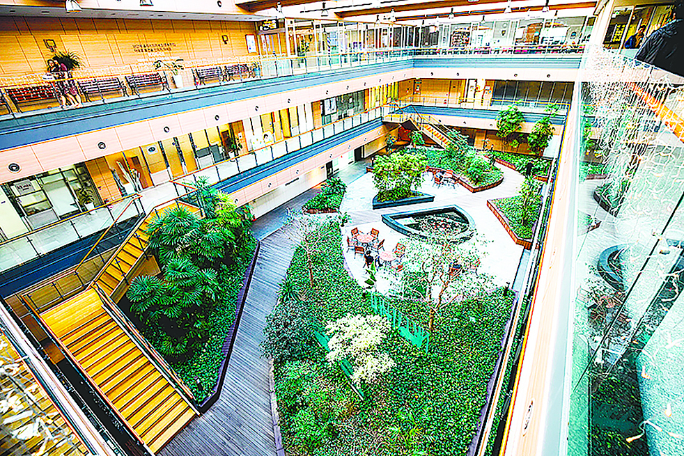 在這裏享受桑拿的同時還能欣賞到玻璃窗外室內庭院「天空庭院atrium」的景色,而且還可以點一些美食來解解饞,再與朋友、家人聊聊天也是一種享受。而汗蒸幕內為了方便讓遊客可以隨時隨地坐下聊天休息,特意在各處佈置了很多桌椅。
