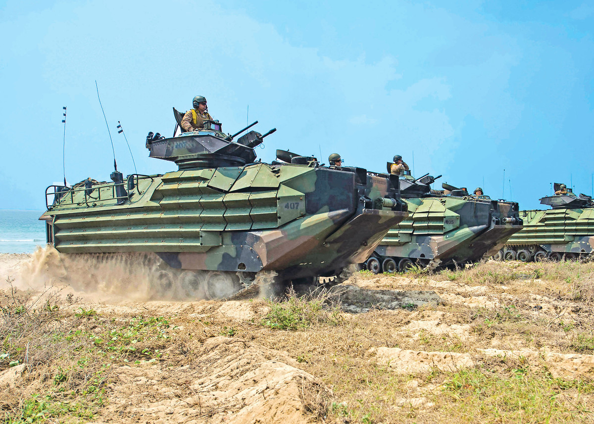 AAV兩棲突擊戰車(Amphibious Assault Vehicle)是一種全履帶式兩棲登陸戰車,現為美國海軍陸戰隊的主要兩棲兵力運輸工具,可從大型兩棲登陸艦艇的船塢內下水,直接運輸登陸部隊涉水上岸,可作為一輛裝甲運兵車使用,還可提供戰場火力支援。