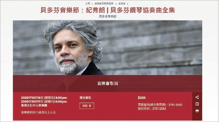 香港管弦樂團表示,已暫時關閉港樂辦公室徹底清潔消毒,未來4場分別在10月16日、17日、23日及24日的演出會取消,下周公佈退款安排。