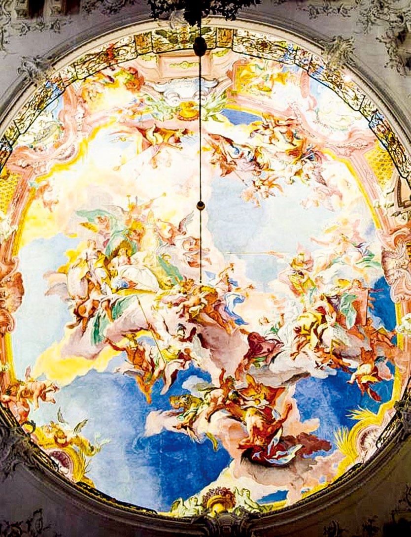 和凡爾賽宮一樣,奧古斯都堡裏的壁畫也相當富麗堂皇,充滿了諸神的形象。居住在這裏的統治者相信他們的權力是由神授予的,而祂們的形象提醒他們應盡的責任。