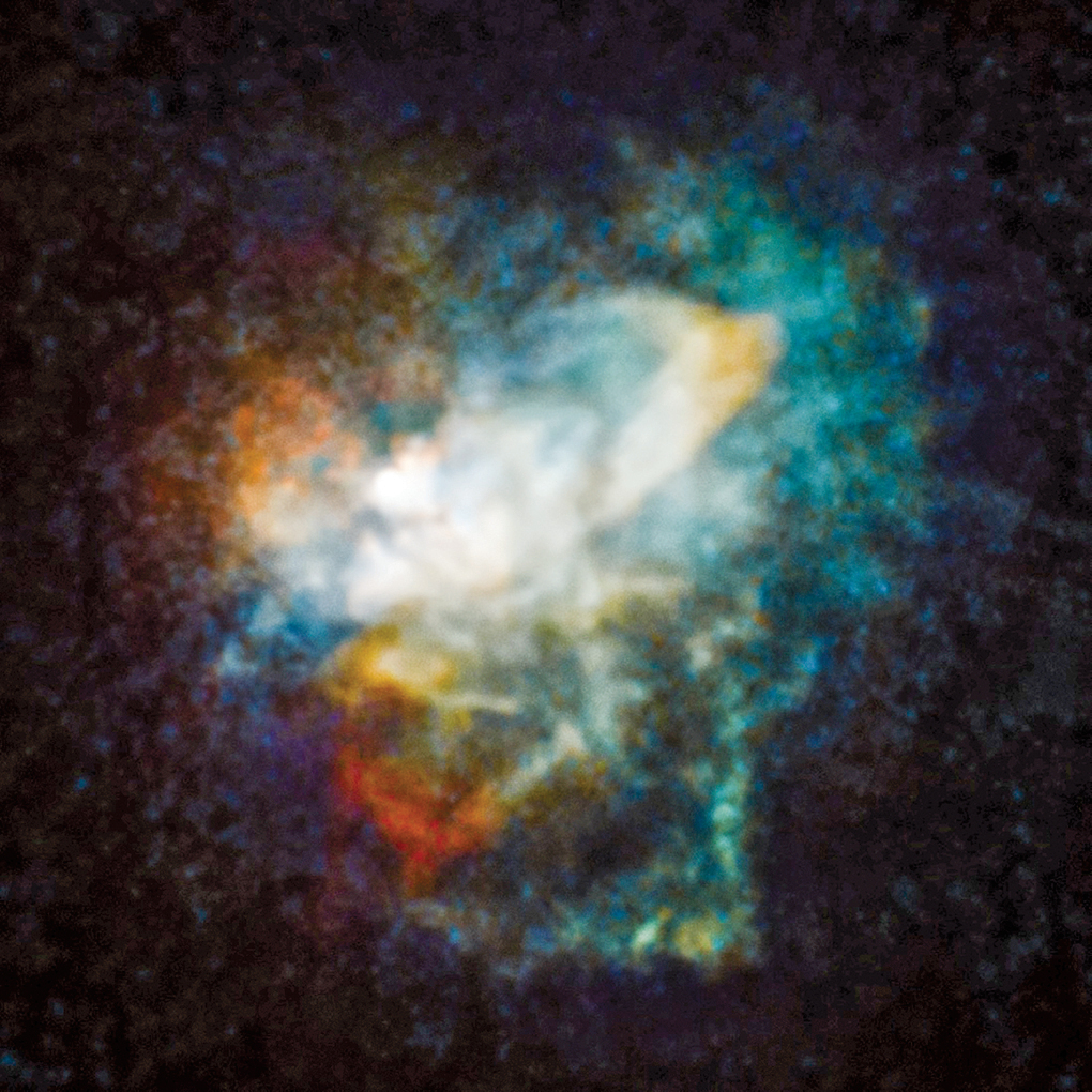 不過距離大犬座VY 近一些的地方,還有一些看起來像繩結一樣的結構,天文學家估計它們是更近期的噴發產物,可能就是19 ~ 20 世紀年間。這期間,大犬座VY 的亮度衰退到只有原來的六分之一。