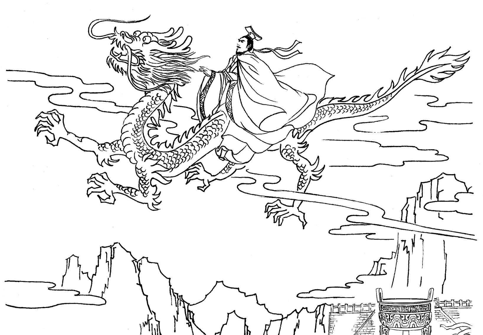 過了很久,上天陡降颶風雷震,山風呼嘯,雷聲轟鳴,大有搖山撼岳之勢。普聞凝神正坐,徹夜未眠,一直坐到天亮。當天空恢復了晴朗,小蛇自行從瓶裏出來。繼而恢復為老人的模樣,向普聞致謝。幸得普聞的法力庇護,這一龍躲過了一劫。