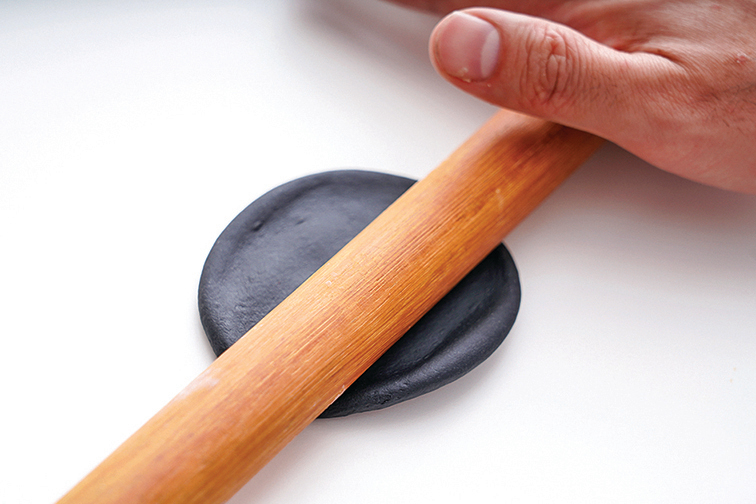 2.黑麵團微壓扁,再擀成直徑7cm圓形。