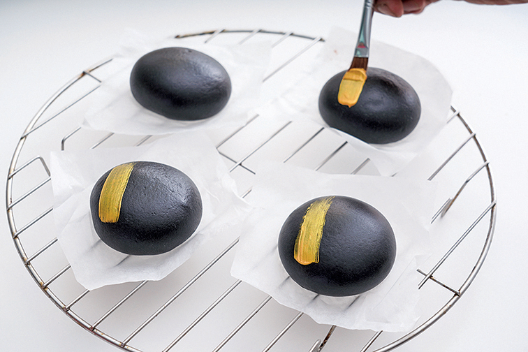 8.在放涼的包子表面刷上食用金色色膏即可。
