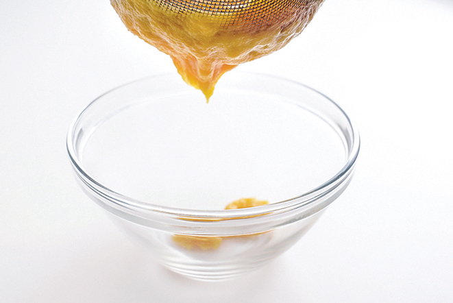 8.用粗孔篩網過篩奶黃餡,並濾除雜質。