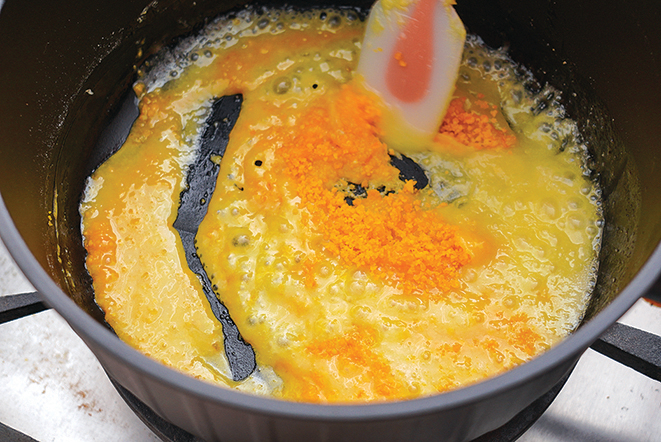 6.接著倒入湯鍋,以小火加熱至濃稠,關火。