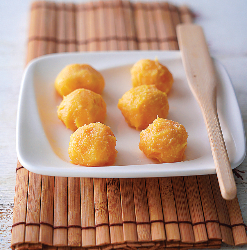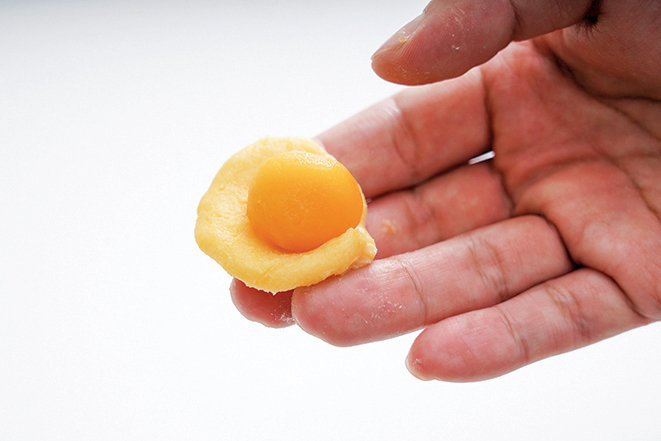 3.流沙餡必須完全被奶黃餡包覆,在接下來的蒸製過程才能避免爆餡。