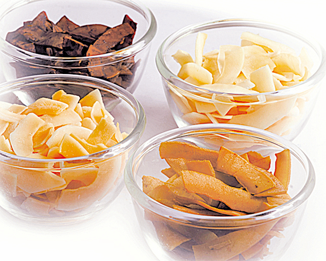 有人還直接把烤椰片當零食,調製成各種口味,如芒果、朱古力、菠蘿等口味,方便又好吃。