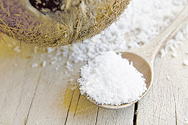 將椰肉用沸水煮沸後刨成絲,乾燥而成。常用於咖喱食品、椰子蝦或椰子飯,也可用於甜品,能自由掌控甜度。