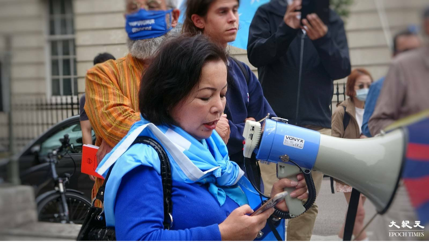 世界維吾爾大會(World Uyghur Congress)英國理事拉希瑪‧馬赫穆特(Rahima Mahmut)在台上發言介紹新疆烏魯木齊「7.5事件」大屠殺12周年的背景,當年示威衝突事件演變成中共以暴力鎮壓殺死並拘捕數千名維吾爾人,中共自此將維吾爾人定為國家的敵人和恐怖份子,並在整個維吾爾地區實行高壓的軍警統治。她又指,中共近年在當地的的行為,己被證明是對維吾爾人不斷升級的國家迫害,包括「集中營」、文化滅絕、身份認同改造、母子分離,如今已達到有系統的種族滅絕的程度。