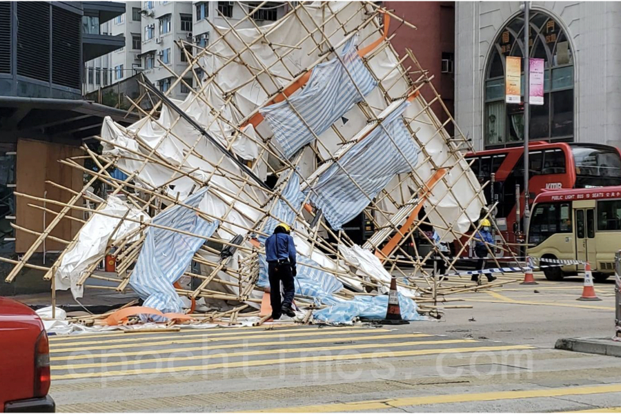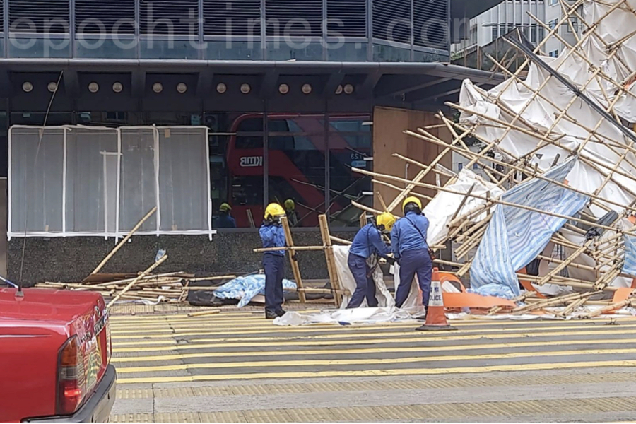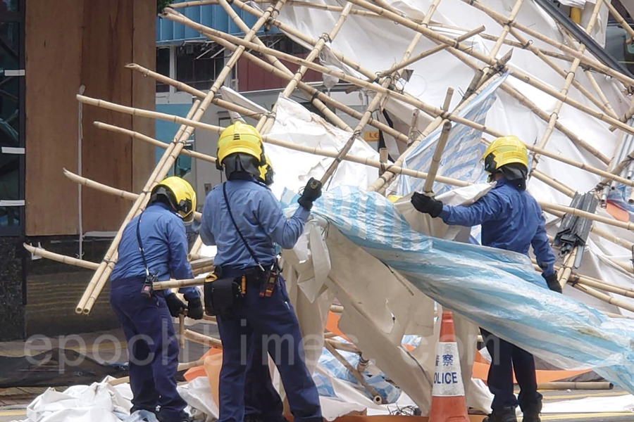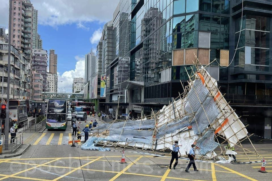今日 (7日) 上午接近11時,有市民報案。位於欽州街及長沙灣道交界的長沙灣政府合署外,一幅大約10米乘7米的工作棚架搖晃不定。