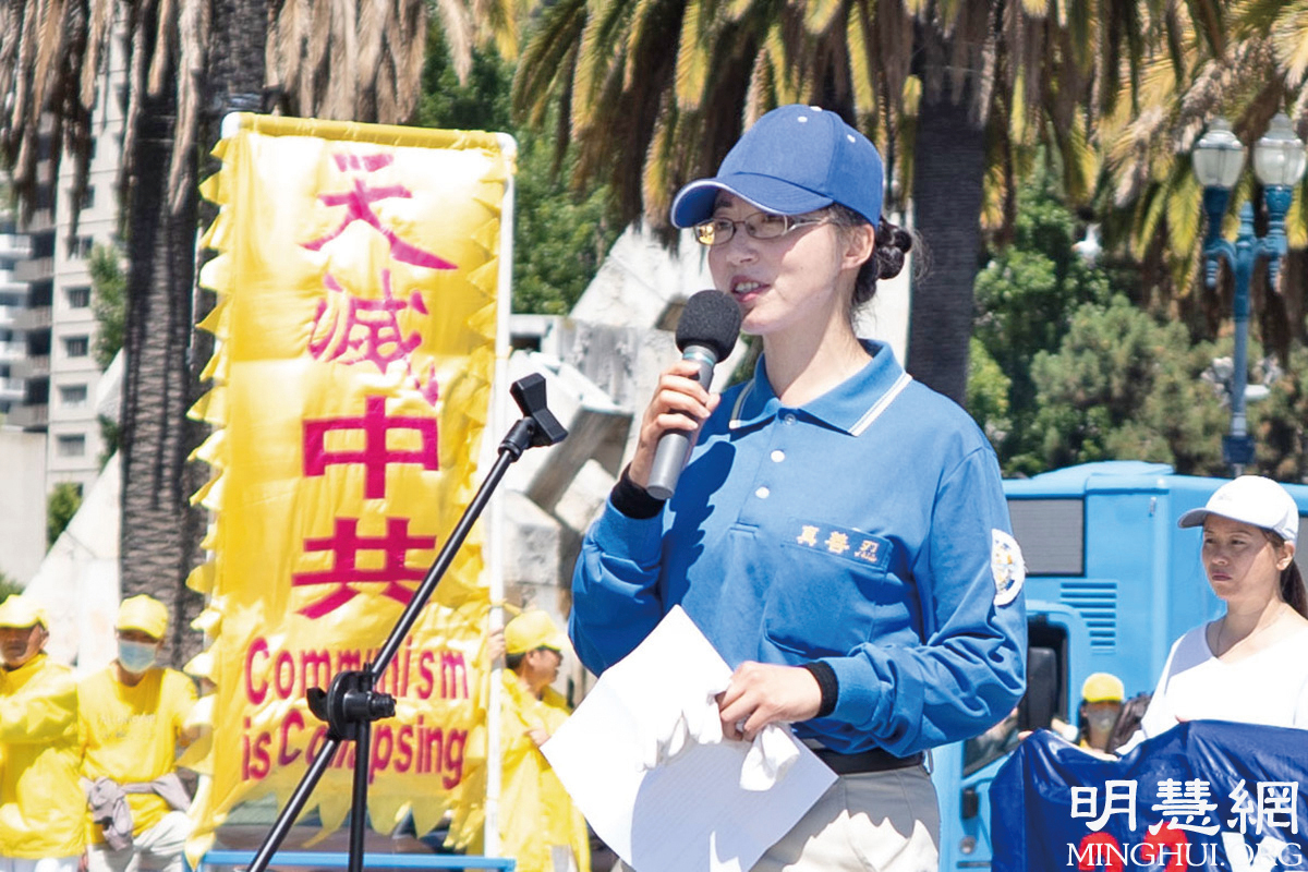 現居舊金山的張真妮從1994年就跟著家人修煉法輪功,她說:「我的姐姐和父母修煉幾個月後慢性病就好了。我從小就在真、善、忍的薰陶下成長,這讓我在這個混亂的世界中不迷失方向。」