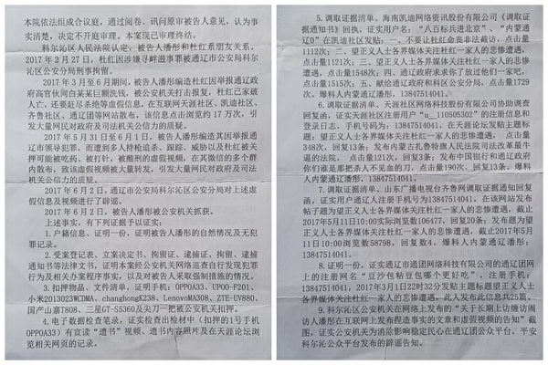 據判決書認定,2017年3月至6月期間,潘彤「編造」杜紅舉報通遼政府高官夥同白某某巨額洗錢等,在互聯網天涯社區等網站發布。點擊瀏覽量約17萬次,引發大量網民關注。在朋友圈發布自述「遺書」的影片。
