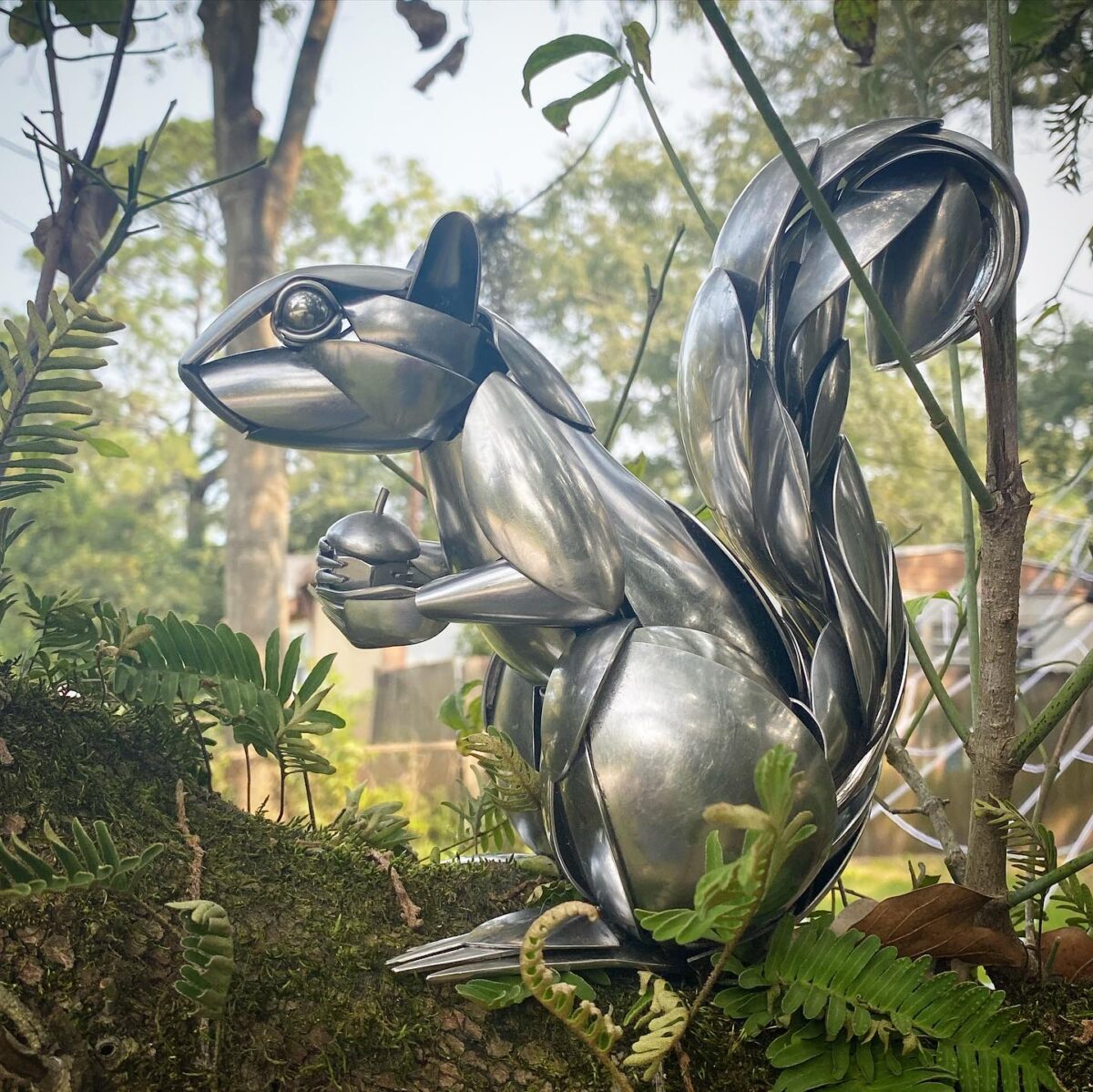 湯匙、叉子對一般人而言只是用餐的工具,但美國南卡羅來納州一位藝術家卻成功變廢為寶,用這些舊金屬結合各種浮木創作出唯妙唯肖、活靈活現的動物雕塑。