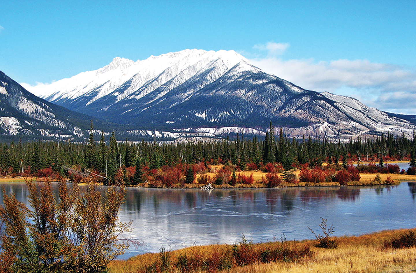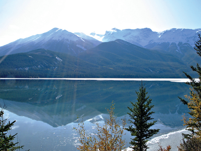 秋季的班夫(Banff)和賈斯伯(Jasper)兩個國家公園氣溫轉低,乍來的秋寒使遊人少了許多,不過在高山白雪映照之下,山色一樣是媚態橫生,明豔欲流。