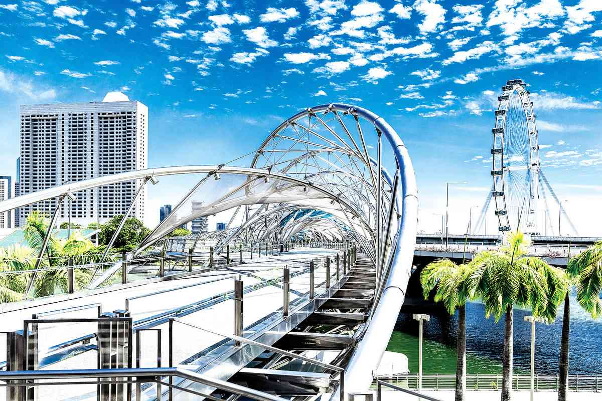 雙螺旋橋坐落於新加坡濱海灣,是世界上首座雙螺旋人行橋,於2010年4月24日通行。其設計靈感來自DNA的兩條螺旋形雙鏈結構,象徵新加坡 「生命與延續、更新與成長。」雙螺旋橋位於金沙酒店樓下、藝術科學博物館旁邊,可以說是現代建築的典範之作。橋身全長280米、寬6米,可同時容納1萬6千人,是新加坡最長的人行天橋。
