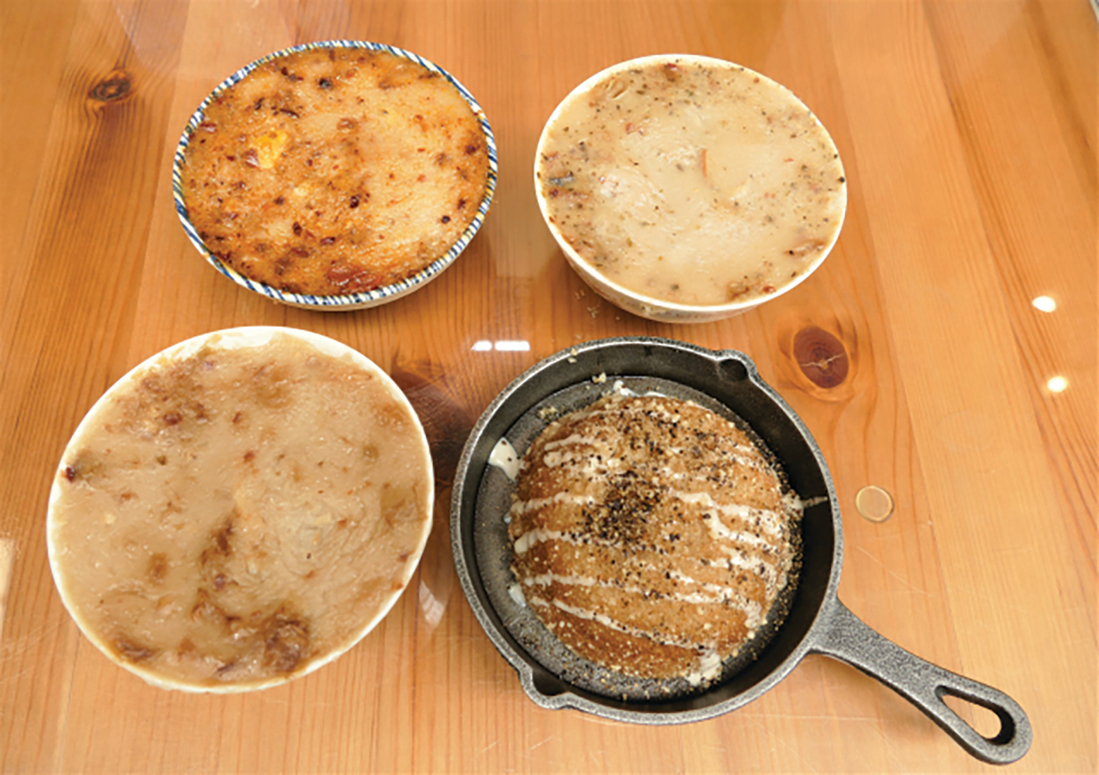 麻豆真的是賣碗粿的重鎮,有很多傳統的老碗粿店,有的老店只賣碗粿和熱湯,一賣就是百年,也有新生代接手後,打造了全新店面,更創造新奇口味,如加入迷迭香的意式香草碗粿、在熱油中炸得外酥內軟的酥炸碗粿,和又辣又麻的川辣碗粿。