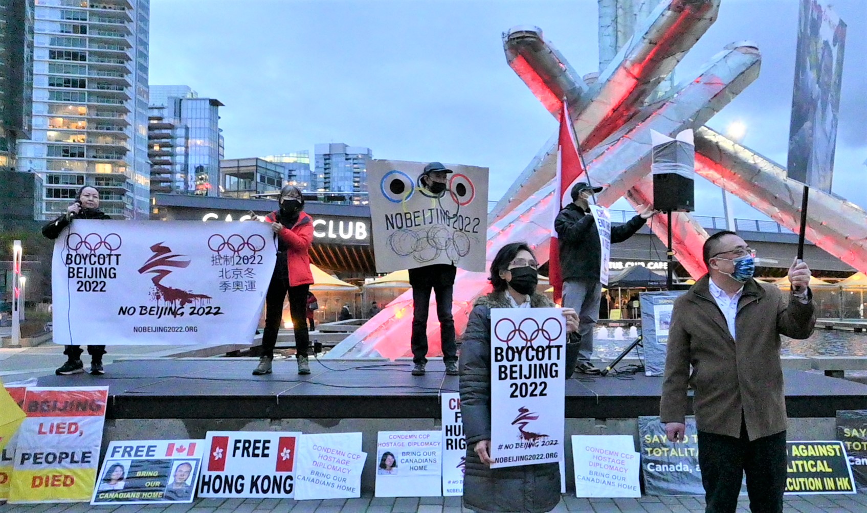 10月27日晚,中共為北京2022冬奧會倒計時100天舉辦全球宣傳活動 ,溫哥華一些民眾趕到溫哥華活動會址、普爾廣場(Jack Poole Plaza)抗議,呼籲加拿大與其它西方國家抵制北京2022冬奧會。他們表示,一個犯下種族滅絕與侵犯人權的國家,完全違背了奧運精神。