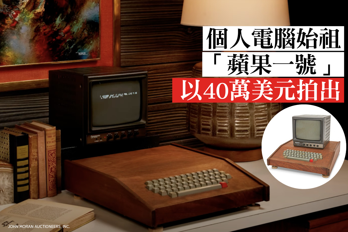 「蘋果一號」(Apple-1)是美國蘋果電腦公司(今蘋果公司)在1976年生產的第一款個人電腦,堪稱個人電腦的始祖。有一台這種型號的電腦日前在加州一場拍賣會上,以40萬美元的價格賣出。令人驚訝的是,在誕生將近半個世紀之後,這台電腦還能正常使用。