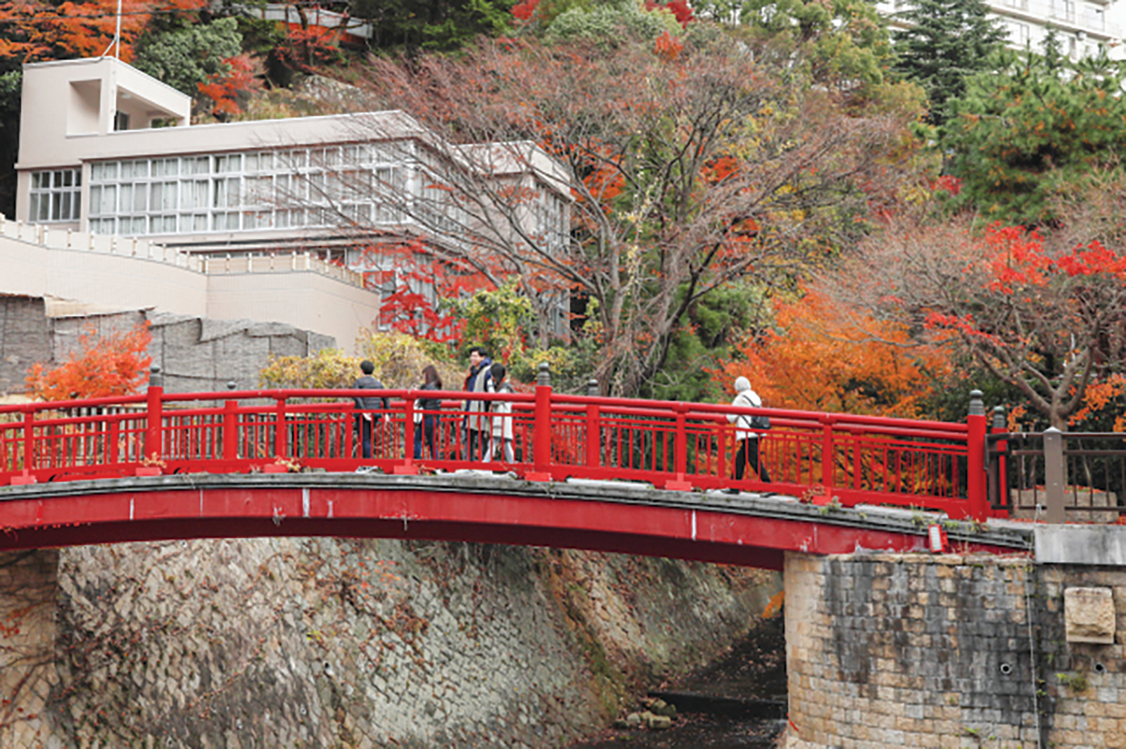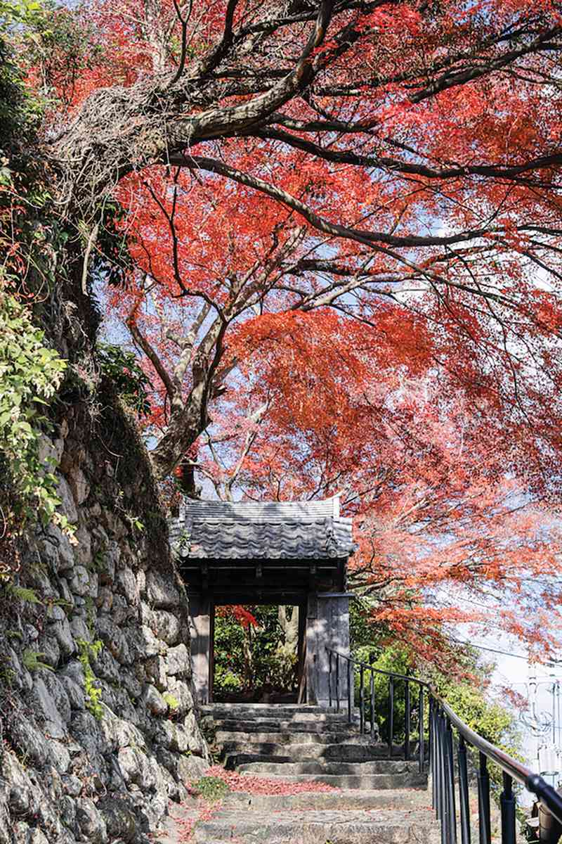 「有馬溫泉」的知名打卡楓景,首推充滿歷史韻味溫泉街道上的「寧寧橋」、「瑞寶寺公園」及「善福寺」。瑞寶寺公園內2,500棵楓樹於晚秋將園內染得火紅,戰國時期常來此地休養的豐臣秀吉將軍,曾讚歎這片美麗楓景「百看不厭」,因而得名「日暮之庭」。豐臣秀吉愛用的石棋盤遺跡至今還保留於庭內,更為此地增添一抹歷史韻味。
