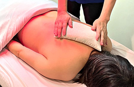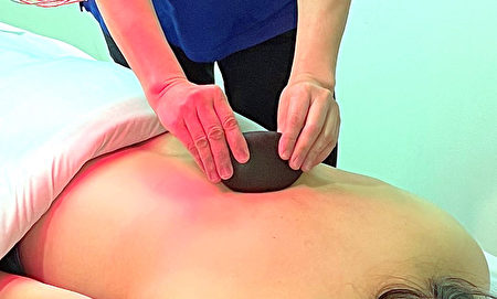 用加熱的石頭在患者身體上推拿按摩,籍此打開肌肉,疏通經絡,改善血液循環。