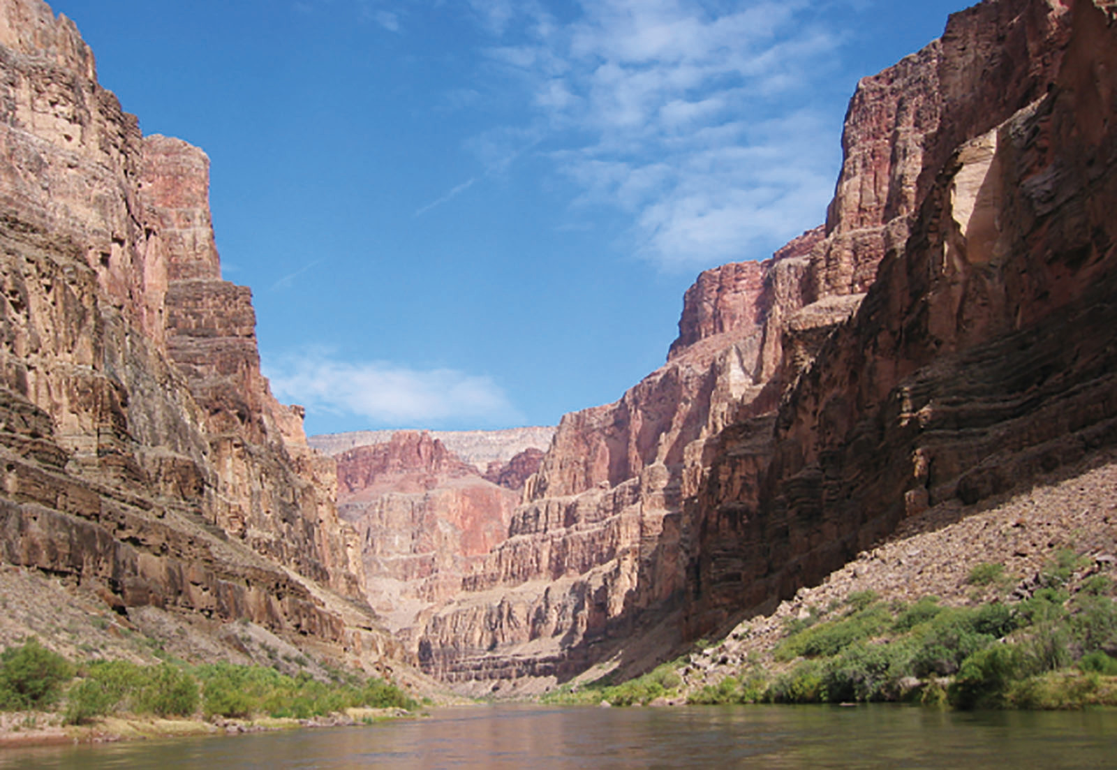 科羅拉多大峽谷雖得名於科羅拉多高原,峽谷卻全程都在亞利桑那州境內。站在大峽谷的頂端俯視谷底,抑或是距離遙遠,抑或是峰巒掩隱,奔騰的科羅拉多大河鋒芒盡斂,就像一支埋伏著等待出擊的大軍,偃旗息鼓。一時間再也看不到它湍急跌宕的英姿,再也聽不見它破石穿空的吶喊。直到幾百里之外,穿過了大峽谷,它才重現奔騰咆哮的本色,不可阻擋的滾滾流向太平洋。