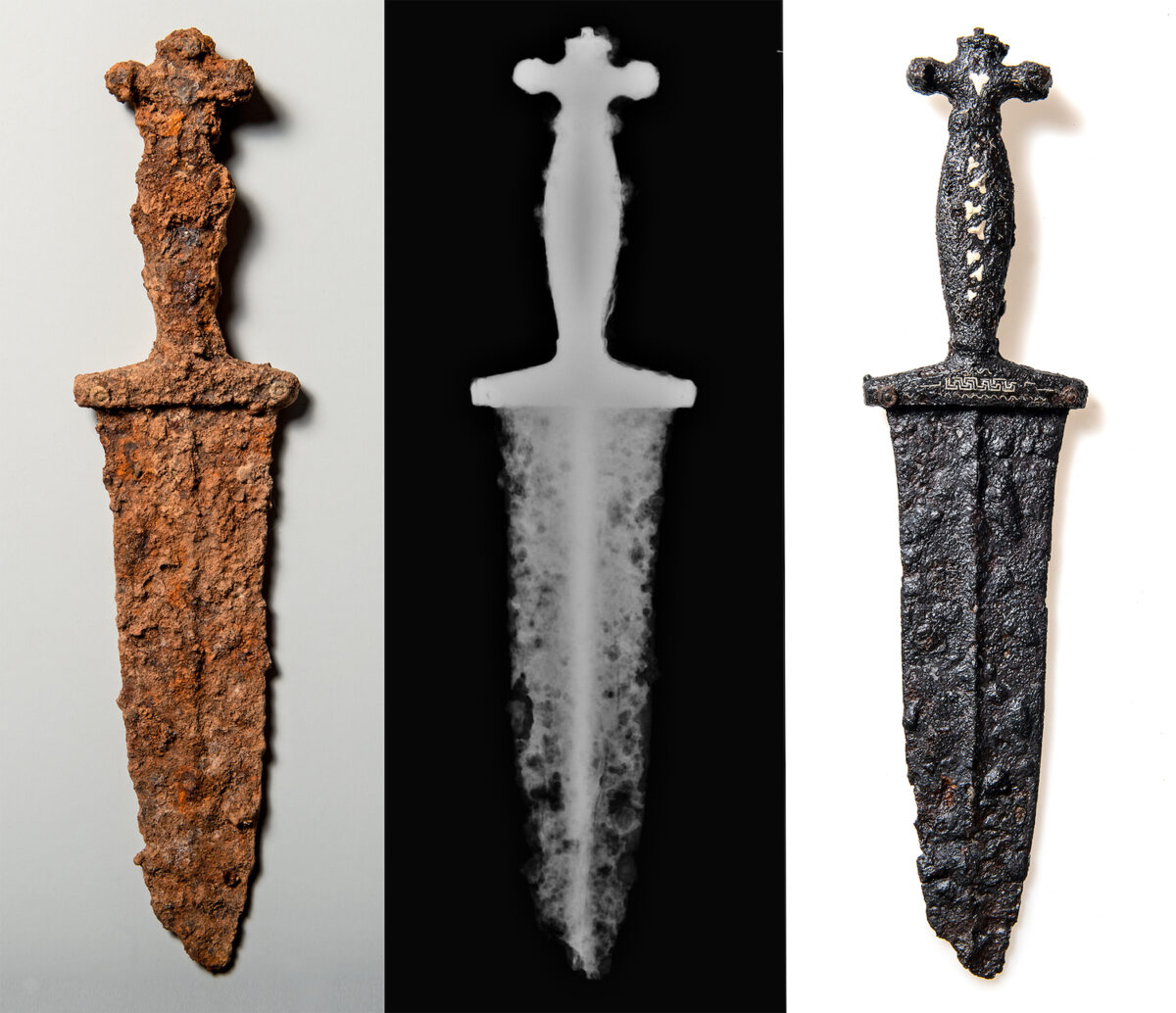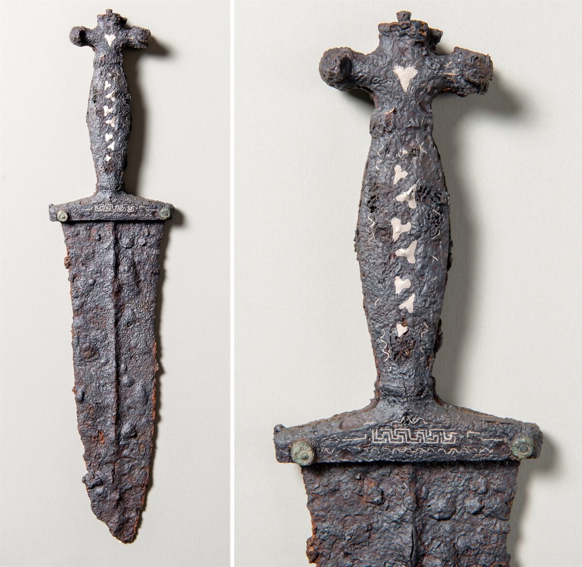 一年後的2019年春天,他終於在地面以下約30厘米處,真的挖出一把華麗的古羅馬匕首,它帶有一個十字形把手,上面還鑲有精美的黃銅和銀,以及其它裝飾品。