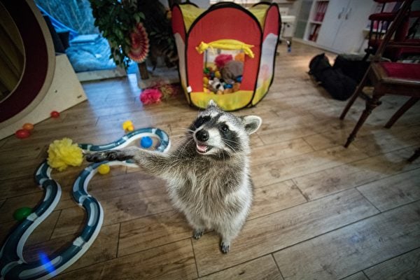 萊寧格說:「浣熊和貓一樣溫順,而且它絕對可以把房子破壞掉。」萊寧格補充說:「當浣熊被奶瓶餵養時,它很相信人類。」