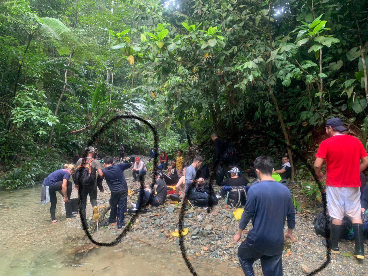 杜志良說,熱帶雨林面積太大了,一旦迷路就走不出來。而且即使順利,也要連續走五天至七天才能走出來。他們每天腳走得磨起泡,還得繼續往前走,他(兒子)走不動,他就用衣服拴在他兒子身上拽著。「因為還要爬山,那個山也不是石頭山,都是那種泥濘的路,走一下摔一跤,走一下摔一跤,就這樣生拉硬拽地把他拽出來」。期間他們餓了隨便吃點餅乾、公仔麵,晚上住帳篷。