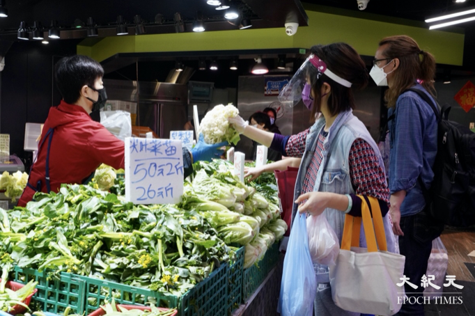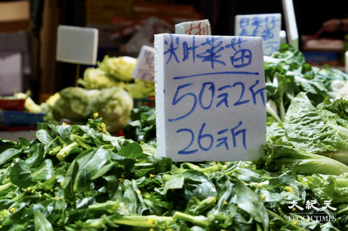 本地菜價也居高不下,記者在天水圍一街市發現,尖葉菜苗26元售一斤,娃娃菜也要30元一份。受屠房暫停屠宰豬肉影響,街市無新鮮豬肉售賣。@