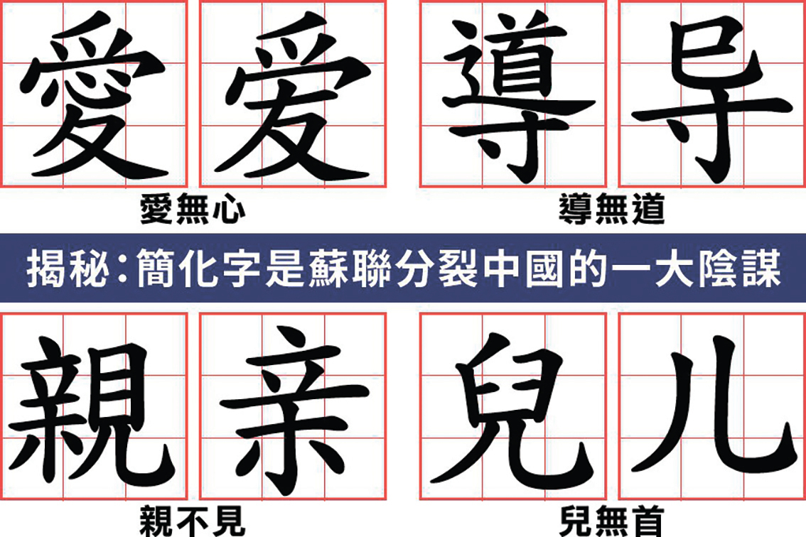 「漢字有它的意義存在,有它的精髓內涵,如果你深入研究,會感到簡體字已經簡化到連文化精髓都沒有了。」如今流傳最廣的一段順口溜,正能說明此理:「親(亲)不見,愛(爱)無心,產(产)不生,廠(厂)空空。」諸如此類的例子不勝枚舉,讓人感到匪夷所思、觸目慟心。