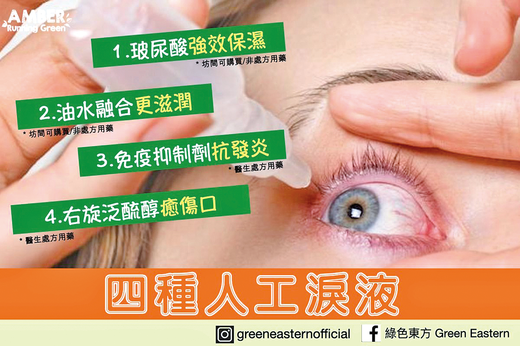 加強乾眼症的治療,廖士傑推薦四款不同功能的人工淚液。