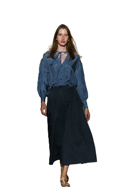 西裝材質的寬褲材質比較挺,可以修飾骨盆兩側。淺藍色的牛仔寬褲搭配淺色的上衣,就是一個萬年不敗的組合,帥氣中洋溢著青春。