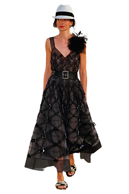黑色穿著容易在視覺上顯得氣色暗沉,只要搭以鮮豔明亮的小配件點綴,例如絲巾、珠子胸針、帽子、閃亮腰帶,或是樣式繁複的金屬項鍊等,都能起到很好的提亮、修飾效果。