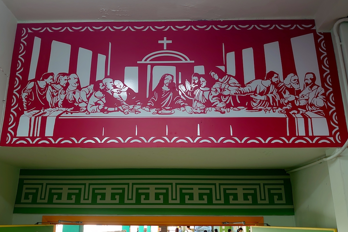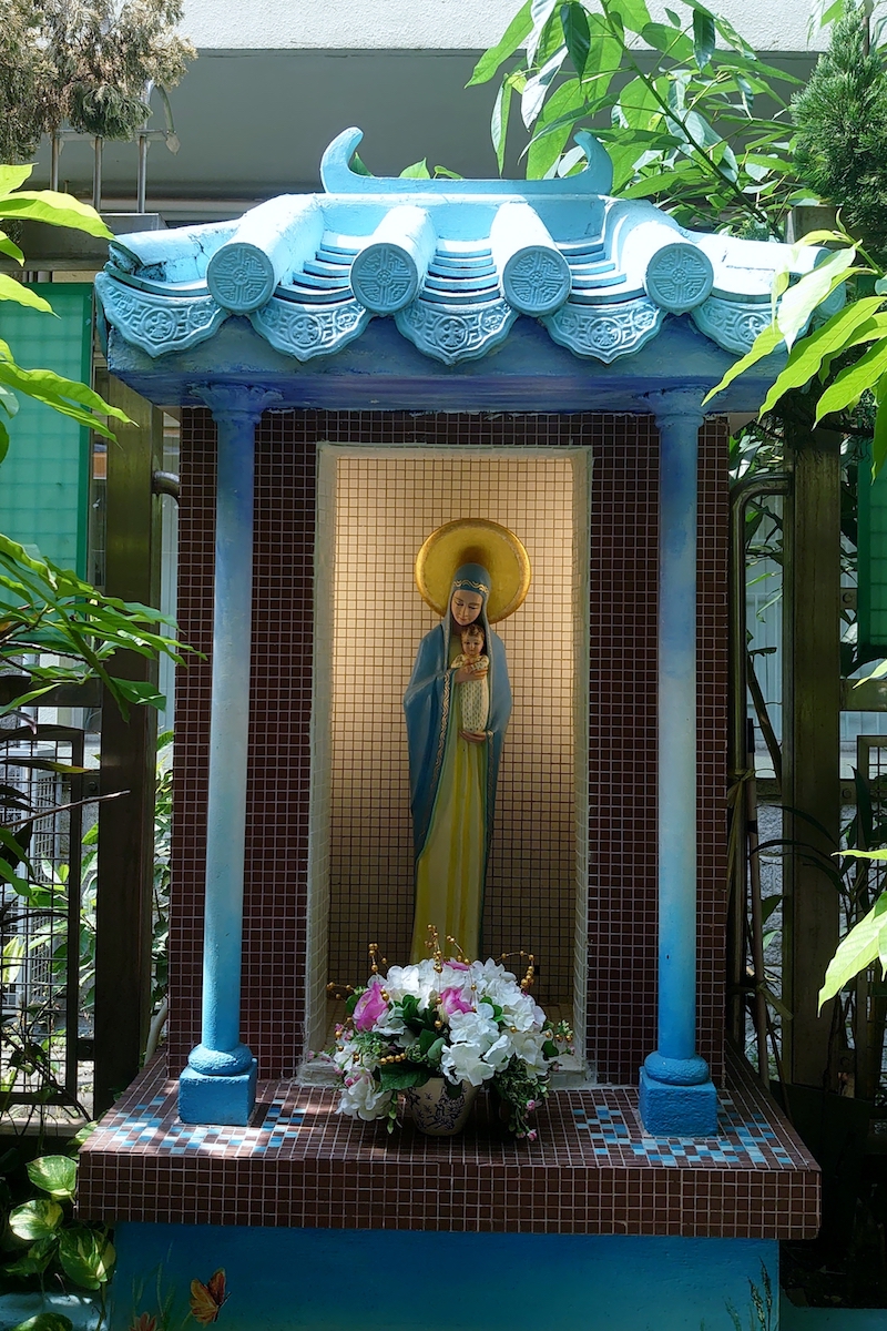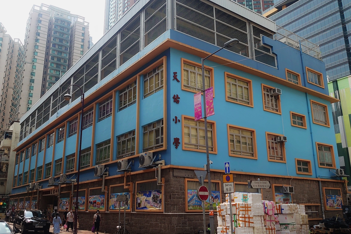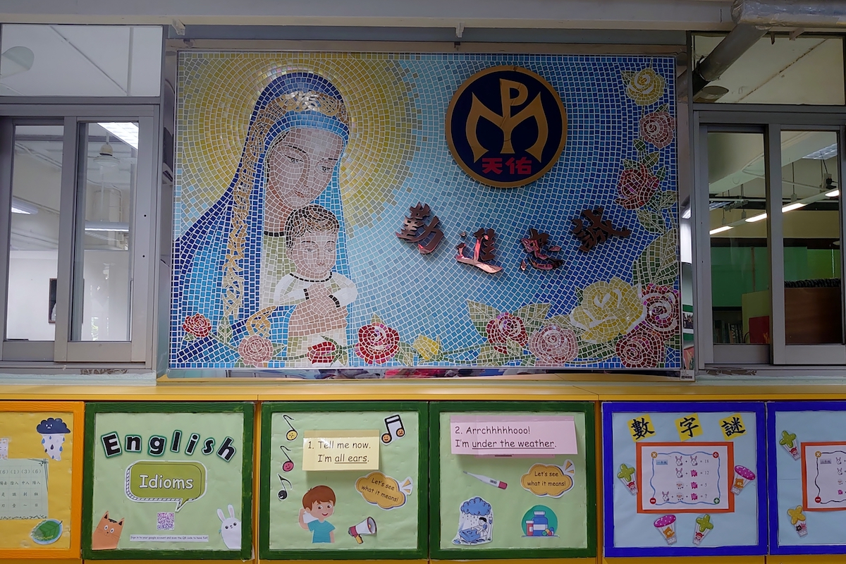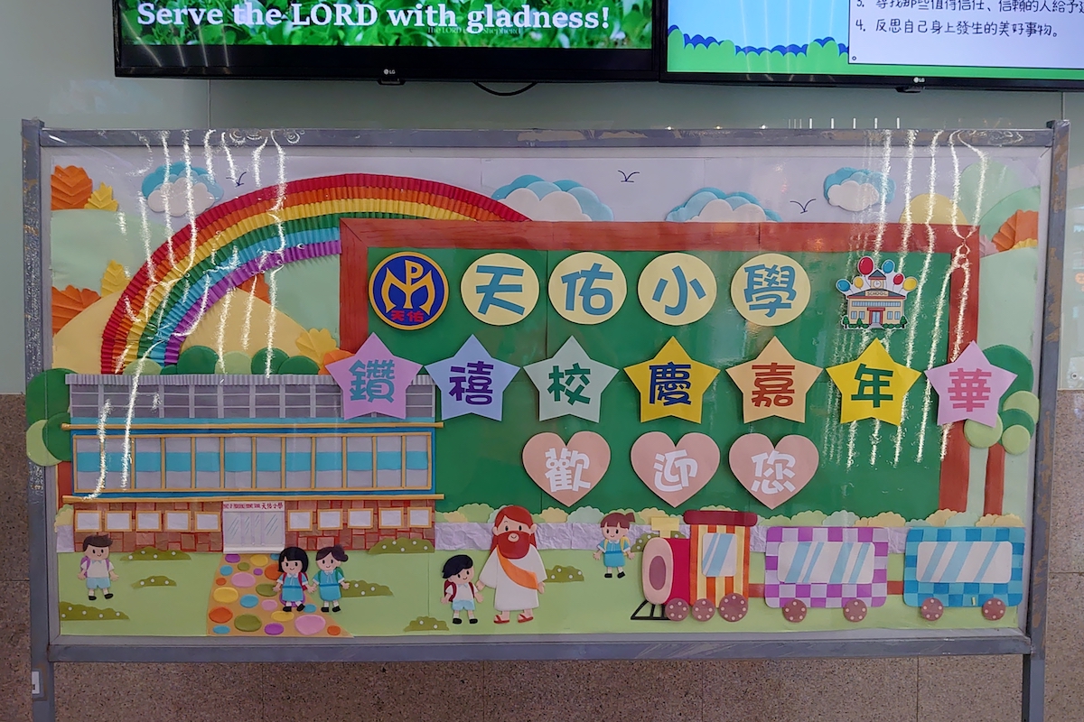 在2021年9月,天佑小學為慶祝其創校60周年,以「天佑砥礪六十載,勤進忠誠創未來」為題,舉辦了鑽禧校慶嘉年華,歡迎所有公眾人士參與。活動內容豐富,除了一樓課室及特別室,安排了不少攤位遊戲外,圖書館亦安排了讓家長認識學校的講座,地下亦有STREAM編程設計的介紹及各個打卡位,而在一樓及地下之間的樓梯,則是學校新建的中華文化長廊,介紹中華的戲曲、建築、運動及詩歌等藝術。當中,筆者認為最值得介紹的,是放在一樓樓梯頂部,以剪紙格式製成的「最後的晚餐」,高度體現中國傳統藝術及學校天主教故事的融為一體。同樣出色的是在地下的學校地標——聖母像,以中式金字頂亭子或單開間廟宇的建築格式,內放西方宗教聖像,頗有中華復興式的設計意味。